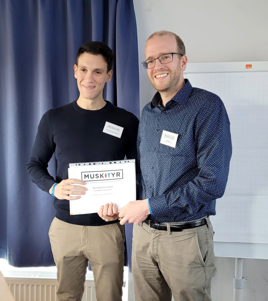 At MuSkITYR, we are convinced that knowledge transfer in science is not a one-way process, but a dynamic dialogue. To recognize this exchange, we always honor those who actively participate in the discussions. This year, the prizes for the best question go to Jan-Moritz Ramge from Hannover Medical School and Karyna Tarasova from the University of Veterinary Medicine Vienna for their insightful questions and their commitment.